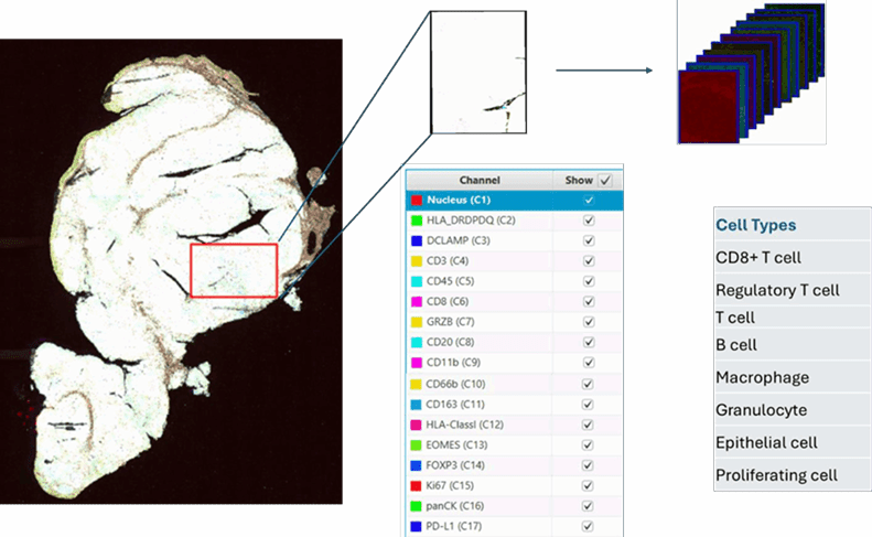 Problem Statement: Analyze whole tissue images with cells, cell membranes and nuclei to classify cells as per specific biomarkers. The images are generated on multiple channels with each channel corresponding to a specific biomarker protein.
