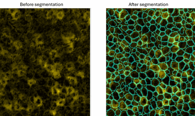The first step in the pipeline is to segment the image into individual cells