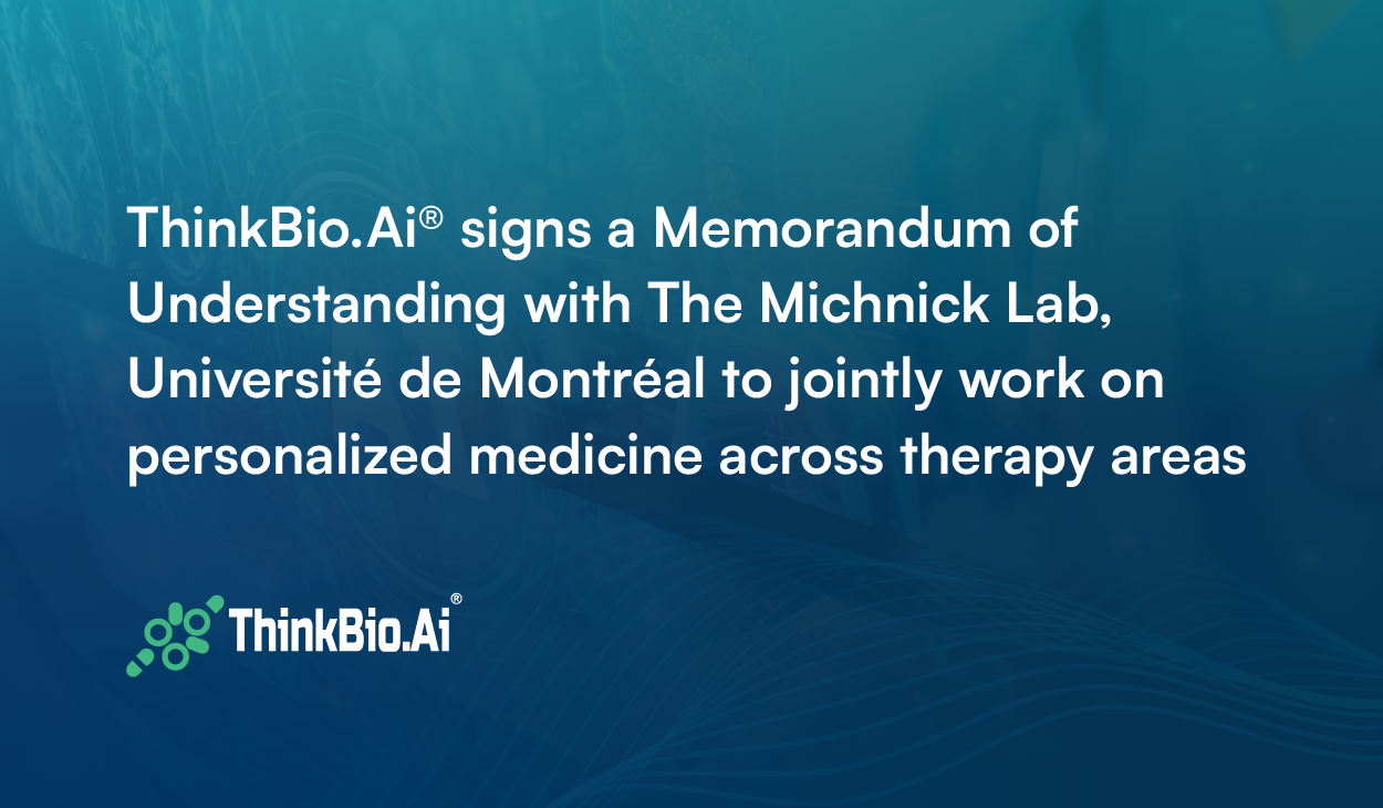 August 08, 2025 ThinkBio.Ai® signs a Memorandum of Understanding with The Michnick Lab, Université de Montréal to jointly work on personalized medicine across therapy areas Read more